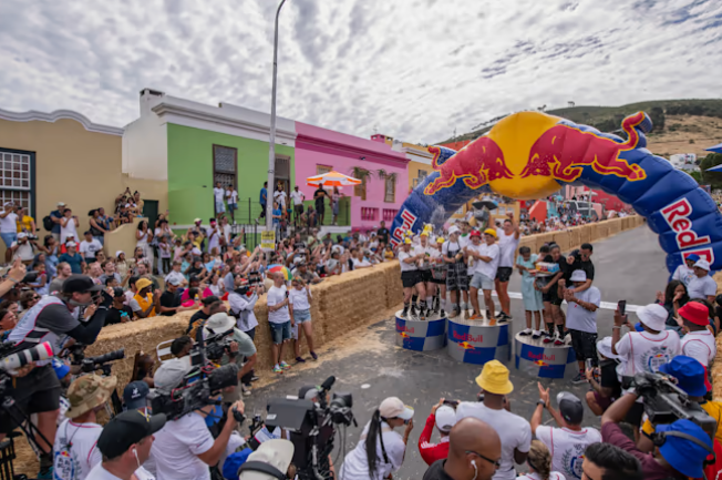 The steep 600-meter track on Signal Hill's slopes was run by the brave, the daring, and the completely insane against the backdrop of Table Mountain. The Potjie Boytjies team eventually prevailed over the other 57 teams in the Red Bull Box Cart Race despite all South African-inspired obstacles.